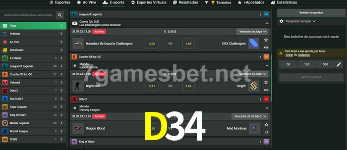 A aposta D34 oferece aos jogadores a experiência mais conveniente de apostas em eSports!